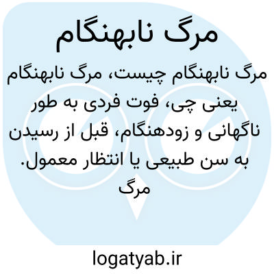 فوت فردی به طور ناگهانی و زودهنگام، قبل از رسیدن به سن طبیعی یا انتظار معمول. مرگ نابهنگام می‌تواند ناشی از بیماری‌های ناگهانی، تصادفات یا عوامل غیرمنتظره دیگر باشد و معمولاً با حس شوک و تأثر خانواده و جامعه همراه است.