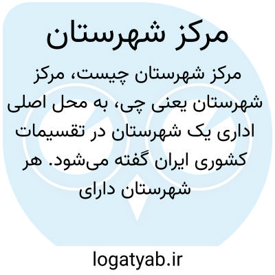 به محل اصلی اداری یک شهرستان در تقسیمات کشوری ایران گفته می‌شود. هر شهرستان دارای یک یا چند بخش است و مرکز شهرستان معمولاً شهری است که دفاتر ادارات شهرستان و فرمانداری در آن واقع شده‌اند. این مرکز نقش مهمی در مدیریت و ارائه خدمات به مردم منطقه دارد.