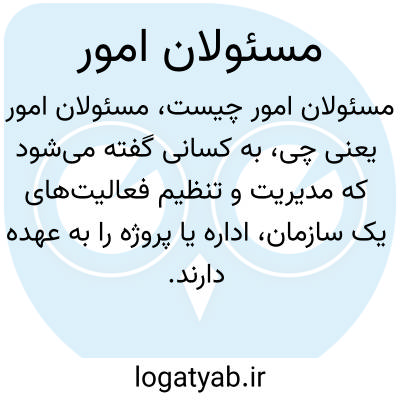 به کسانی گفته می‌شود که مدیریت و تنظیم فعالیت‌های یک سازمان، اداره یا پروژه را به عهده دارند. مسئولان امور باید تصمیم‌گیری کنند و بر انجام صحیح کارها نظارت داشته باشند.