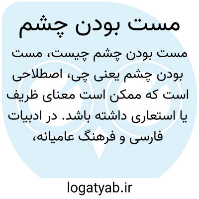 اصطلاحی است که ممکن است معنای ظریف یا استعاری داشته باشد. در ادبیات فارسی و فرهنگ عامیانه، "مست بودن چشم" ممکن است به حالتی اشاره کند که چشم‌ها از زیبایی، عشق یا سرور چنان درخشان یا خمار شده‌اند که گویی مست هستند. همچنین ممکن است نشانه‌ای از سرمستی روحی یا حسی باشد که شخص تجربه می‌کند.