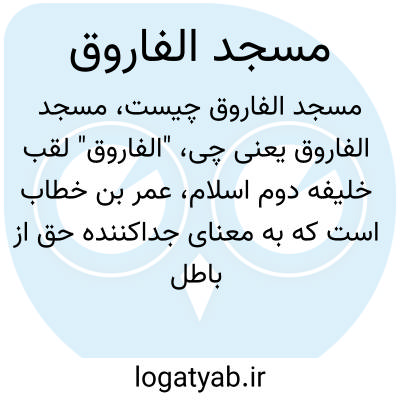 "الفاروق" لقب خلیفه دوم اسلام، عمر بن خطاب است که به معنای جداکننده حق از باطل است. مسجد الفاروق مسجدی است که به افتخار وی نامگذاری شده و معمولاً یادآور عدالت و قدرت تفکیک حق و باطل است.