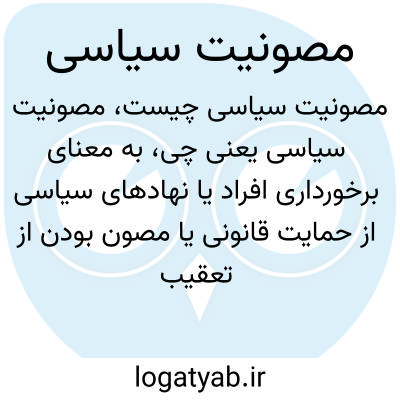 به معنای برخورداری افراد یا نهادهای سیاسی از حمایت قانونی یا مصون بودن از تعقیب قضایی به دلیل موقعیت یا مقام سیاسی است. این مصونیت به منظور حفظ استقلال و آزادی فعالیت‌های سیاسی و جلوگیری از بهره‌برداری‌های سیاسی در برابر فشارها و تهدیدات ایجاد می‌شود.