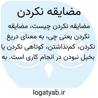 به معنای دریغ نکردن، کم‌نذاشتن، کوتاهی نکردن یا بخیل نبودن در انجام کاری است. به طور مثال کسی که مضایقه نمی‌کند، در دادن کمک یا امکانات کوتاهی نمی‌کند و با سخاوت عمل می‌نماید.