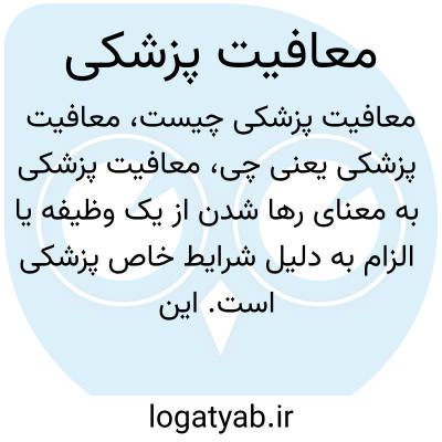 معافیت پزشکی به معنای رها شدن از یک وظیفه یا الزام به دلیل شرایط خاص پزشکی است. این معافیت معمولاً در زمینه‌هایی مانند خدمت سربازی، شرکت در مسابقات ورزشی یا انجام برخی فعالیت‌ها به افرادی داده می‌شود که بنا به تشخیص پزشکان توانایی انجام آن فعالیت‌ها را ندارند به دلیل شرایط یا بیماری‌های خاص.