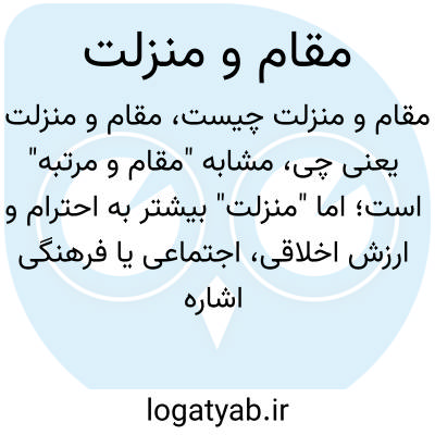 مشابه "مقام و مرتبه" است؛ اما "منزلت" بیشتر به احترام و ارزش اخلاقی، اجتماعی یا فرهنگی اشاره دارد. این اصطلاح به حد والای احترام و جایگاه افراد در جامعه اشاره می‌کند که ناشی از دستاوردها، شخصیت یا موقعیت اجتماعی است.