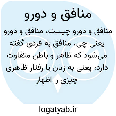 منافق به فردی گفته میشود که ظاهر و باطن متفاوت دارد، یعنی به زبان یا رفتار ظاهری چیزی را اظهار میکند و در باطن یا در عمل چیز دیگری است. دورو نیز فردی است که دو رویه یا دو چهره دارد و در رفتار یا گفتار خود صادق نیست و دیگران را فریب میدهد. این واژهها برای اشاره به افراد ناصادق و فریبکار به کار میروند.