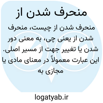 به معنی دور شدن یا تغییر جهت از مسیر اصلی. این عبارت معمولاً در معنای مادی یا مجازی به کار میرود. مثلاً منحرف شدن از راه راست به معنای رفتن به مسیر نادرست یا دور شدن از هدف اصلی است.