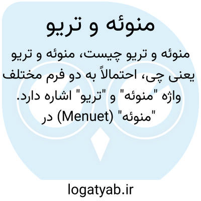احتمالاً به دو فرم مختلف واژه "منوئه" و "تریو" اشاره دارد. "منوئه" (Menuet) در موسیقی نوعی رقص فرانسوی است که در زمان باروک محبوب بود. "تریو" (Trio) واژه‌ای موسیقایی است که به قطعه‌ای اشاره دارد که توسط سه نوازنده یا سه صدا اجرا می‌شود. بنابراین، این عبارت ممکن است مربوط به بخش‌هایی از موسیقی کلاسیک باشد.