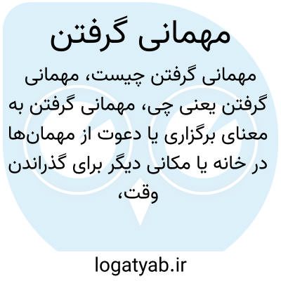 مهمانی گرفتن به معنای برگزاری یا دعوت از مهمان‌ها در خانه یا مکانی دیگر برای گذراندن وقت، جشن گرفتن، یا مناسبت خاصی است. این عمل معمولاً با فراهم کردن خوراکی، نوشیدنی و سرگرمی همراه است.