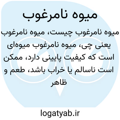 میوه نامرغوب میوهای است که کیفیت پایینی دارد، ممکن است ناسالم یا خراب باشد، طعم و ظاهر خوبی نداشته باشد یا دارای آفات و بیماری باشد. این میوهها برای مصرف مناسب نیستند و معمولاً فروخته نمیشوند یا قیمت پایینی دارند.