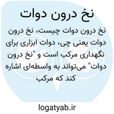 دوات ابزاری برای نگهداری مرکب است و "نخ درون دوات" میتواند به واسطهای اشاره کند که مرکب را بهطور منظم به نوک قلم منتقل میکند یا به طریقی مرتبط با کارکرد دوات و نویسندگی باشد. البته این عبارت ممکن است بیشتر استعاری باشد و اشاره به ریشه و واسطهای در فرآیند نوشتن داشته باشد.