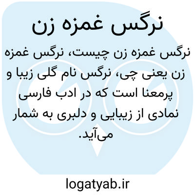 نرگس نام گلی زیبا و پرمعنا است که در ادب فارسی نمادی از زیبایی و دلبری به شمار می‌آید. غمزه زن به فردی گفته می‌شود که با چشم یا حالت چهره به طور نرم و اغواگرانه نگاه می‌کند. ترکیب "نرگس غمزه زن" معمولاً به چشمان جذاب و نافذ اشاره دارد که با حالت بازیگوش یا عاشقانه افراد را مجذوب می‌کند.