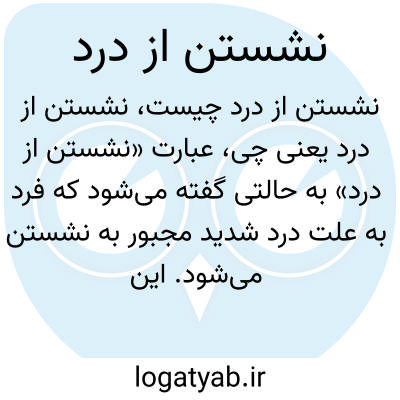 عبارت «نشستن از درد» به حالتی گفته میشود که فرد به علت درد شدید مجبور به نشستن میشود. این اصطلاح معمولاً برای توصیف شدت درد یا شرایطی که موجب ناتوانی موقتی فرد میگردد به کار میرود.