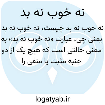 عبارت «نه خوب نه بد» به معنی حالتی است که هیچ یک از دو جنبه مثبت یا منفی را ندارد، یعنی وضعیت یا مسئله‌ای خنثی، معمولی یا بی‌طرفانه است. این ترکیب در مباحث اخلاقی، اجتماعی یا توصیفی برای بیان بی‌طرفی یا میانه‌روی به کار می‌رود.