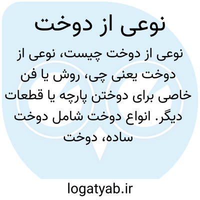 روش یا فن خاصی برای دوختن پارچه یا قطعات دیگر. انواع دوخت شامل دوخت ساده، دوخت زیگزاگی، دوخت ماشینی و دوخت تزئینی است که هر کدام از لحاظ مقاومت و زیبایی کاربردهای متفاوتی دارند.