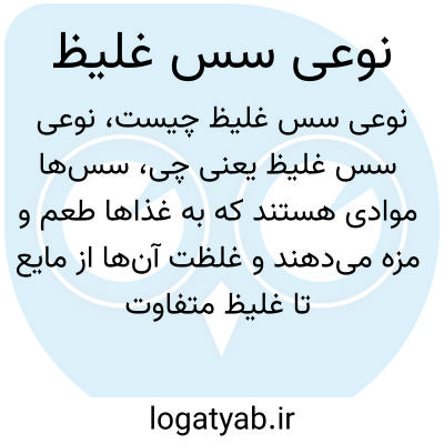 سسها موادی هستند که به غذاها طعم و مزه میدهند و غلظت آنها از مایع تا غلیظ متفاوت است. "نوعی سس غلیظ" میتواند اشاره به سسهایی مانند سس مایونز، کچاپ غلیظ، سس باربیکیو، سس آلفردو یا خامهای داشته باشد که به دلیل غلظت بالا شکل غذا را تغییر داده و به آن غنای طعمی خاصی میبخشند.