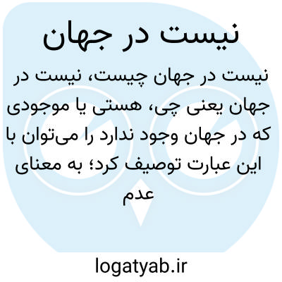 هستی یا موجودی که در جهان وجود ندارد را می‌توان با این عبارت توصیف کرد؛ به معنای عدم وجود در کل جهان. این ترکیب عموماً در متون فلسفی، ادبی یا عرفانی برای بیان نبود چیزی یا نبودن یک مفهوم مطرح می‌شود.