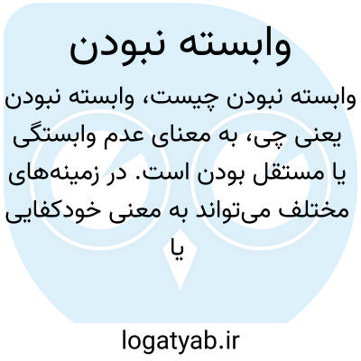 به معنای عدم وابستگی یا مستقل بودن است. در زمینههای مختلف میتواند به معنی خودکفایی یا عدم وابستگی به فرد، سازمان یا کشور دیگر باشد.