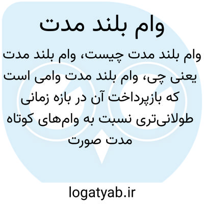 وام بلند مدت وامی است که بازپرداخت آن در بازه زمانی طولانی‌تری نسبت به وام‌های کوتاه مدت صورت می‌گیرد، معمولاً بیش از یک سال. این نوع وام‌ها برای سرمایه‌گذاری‌های بزرگ مانند خرید خانه یا راه‌اندازی کسب‌وکار به کار می‌روند و اقساط آن‌ها به صورت ماهانه یا سالانه پرداخت می‌شود.