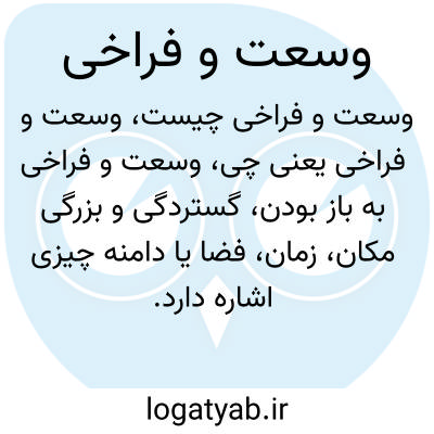 وسعت و فراخی به باز بودن، گستردگی و بزرگی مکان، زمان، فضا یا دامنه چیزی اشاره دارد. این اصطلاح برای بیان مفهوم گسترده بودن و عدم محدودیت در بُعدهای مختلف به کار می‌رود و نشان‌دهنده آزادی و گستردگی است.