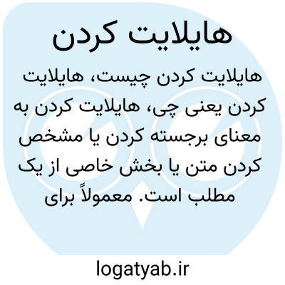 هایلایت کردن به معنای برجسته کردن یا مشخص کردن متن یا بخش خاصی از یک مطلب است. معمولاً برای جلب توجه به نکته مهم یا خلاصه اطلاعات استفاده می‌شود و در اسناد دیجیتال با رنگ متفاوت یا خط کشیدن روی متن انجام می‌شود.