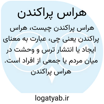 عبارت به معنای ایجاد یا انتشار ترس و وحشت در میان مردم یا جمعی از افراد است. هراس پراکندن می‌تواند باعث به وجود آمدن اضطراب، ناامنی و آشفتگی در جامعه شود.