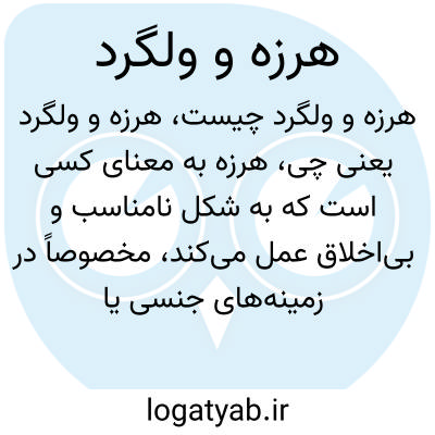 هرزه به معنای کسی است که به شکل نامناسب و بی‌اخلاق عمل می‌کند، مخصوصاً در زمینه‌های جنسی یا رفتاری ناپسند. ولگرد نیز به افرادی گفته می‌شود که بدون هدف خاص یا کار مشخصی همیشه پرسه می‌زنند و زندگی ناپایداری دارند. ترکیب این دو کلمه معمولاً اشاره به فردی دارد که رفتارها و عادات مذمومی دارد و در اجتماع مورد قبول نیست.