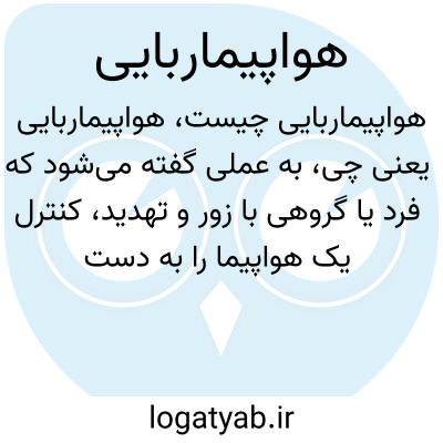 به عملی گفته می‌شود که فرد یا گروهی با زور و تهدید، کنترل یک هواپیما را به دست می‌گیرند و معمولاً به منظور باج‌گیری، درخواست سیاسی یا اهداف دیگر از خدمه و مسافران آن استفاده می‌کنند. این عمل غیرقانونی و مجرمانه است و امنیت حمل و نقل هوایی را تهدید می‌کند.