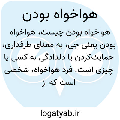 به معنای طرفداری، حمایتکردن یا دلدادگی به کسی یا چیزی است. فرد هواخواه، شخصی است که از کسی یا گروهی دفاع میکند یا علاقه و محبت خاصی نشان میدهد.