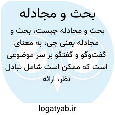 به معنای گفتوگو و گفتگو بر سر موضوعی است که ممکن است شامل تبادل نظر، ارائه دلایل مخالف، و گاهی نزاع کلامی باشد. هدف آن ممکن است رسیدن به حقیقت یا اثبات نظر خود باشد.