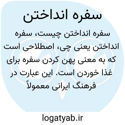 اصطلاحی است که به معنی پهن کردن سفره برای غذا خوردن است. این عبارت در فرهنگ ایرانی معمولاً لحظه آغاز مهمانی یا غذا خوردن را نشان می‌دهد و می‌تواند نمادی از پذیرایی و مهمان‌نوازی باشد. سفره انداختن یک رسم قدیمی و محترم در میان ایرانیان است.