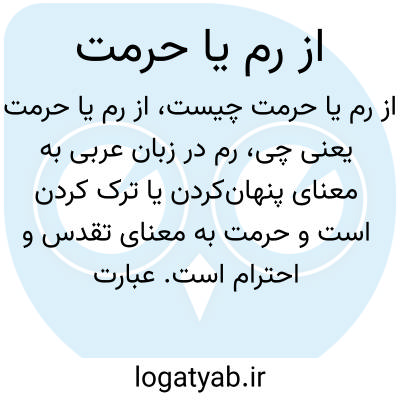 رم در زبان عربی به معنای پنهانکردن یا ترک کردن است و حرمت به معنای تقدس و احترام است. عبارت "از رم یا حرمت" ممکن است اشاره به حفظ حرمت و رعایت احترام یا پرهیز از کارهای پوشیده و محرمانه داشته باشد.