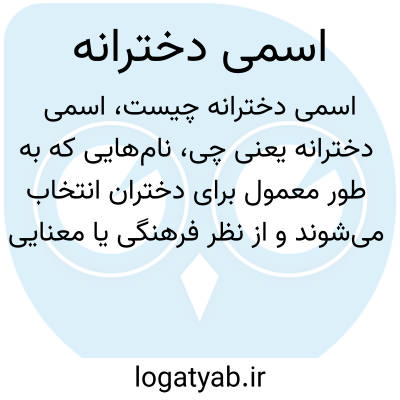 نامهایی که به طور معمول برای دختران انتخاب میشوند و از نظر فرهنگی یا معنایی مناسب جنس مؤنث هستند. این اسامی معمولاً ریشه فارسی، عربی، یا دیگر زبانها دارند و معانی مثبت یا زیبا دارند.
