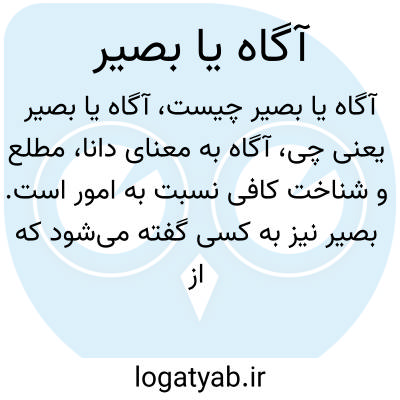 آگاه به معنای دانا، مطلع و شناخت کافی نسبت به امور است. بصیر نیز به کسی گفته میشود که از عمق موضوعات و حقایق به درستی اطلاع دارد و دیدگاهی روشن و دقیق نسبت به مسائل دارد. هر دو کلمه نشاندهنده داشتن دانش و بینش قویاند.