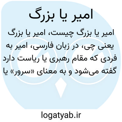 در زبان فارسی، امیر به فردی که مقام رهبری یا ریاست دارد گفته می‌شود و به معنای «سرور» یا «فرمانده» است. همچنین «بزرگ» به کسی گفته می‌شود که مقام، اعتبار یا جایگاه والا داشته باشد.