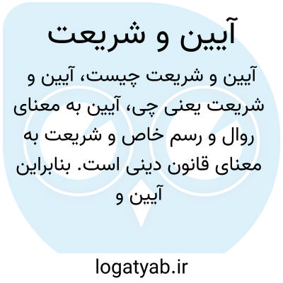 آیین به معنای روال و رسم خاص و شریعت به معنای قانون دینی است. بنابراین آیین و شریعت مجموع قواعد، قوانین و رسوم مذهبی و فرهنگی در یک دین یا جامعه میباشد که نحوه زندگی و مناسک را تعیین میکند.