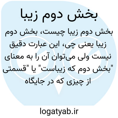 این عبارت دقیق نیست ولی میتوان آن را به معنای "بخش دوم که زیباست" یا "قسمتی از چیزی که در جایگاه دوم قرار گرفته و زیبا به نظر میرسد" در نظر گرفت. نیاز به زمینه بیشتری دارد.