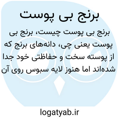 دانه‌های برنج که از پوسته سخت و حفاظتی خود جدا شده‌اند اما هنوز لایه سبوس روی آن باقی مانده است. این نوع برنج معمولاً به صورت نیم‌پخته یا نیم‌سفید است و تفاوتی با برنج سفید کامل دارد.