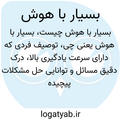 توصیف فردی که دارای سرعت یادگیری بالا، درک دقیق مسائل و توانایی حل مشکلات پیچیده است. افراد بسیار با هوش معمولاً می‌توانند در زمینه‌های علمی، ادبی یا هنری موفق باشند.