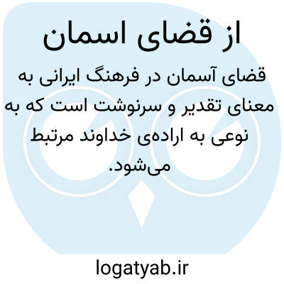 قضای آسمان در فرهنگ ایرانی به معنای تقدیر و سرنوشت است که به نوعی به ارادهی خداوند مرتبط میشود. این مفهوم به باور مردم اشاره دارد که هر چیزی که در زندگی آنها اتفاق میافتد، بخشی از یک نقشهی بزرگتر و الهی است. این دیدگاه به فرد کمک میکند تا با شرایط سخت زندگی آرامش بیشتری داشته باشد و به اعتقاد به حکمت بالای الهی ادامه دهد. تأثیر قضای آسمان در زندگی روزمره از طریق وقوع اتفاقات غیرمنتظره و تجربیات زندگی مشخص میشود. مردم ممکن است با چالشها یا فرصتهای غیرمنتظرهای مواجه شوند که به نظر میرسد بخشی از سرنوشت آنهاست. این تجربیات میتواند شامل موفقیتهای ناگهانی یا ناکامیهای غیرمنتظره باشد که فرد را به تفکر دربارهی تقدیر و ارادهی الهی وادار میکند.