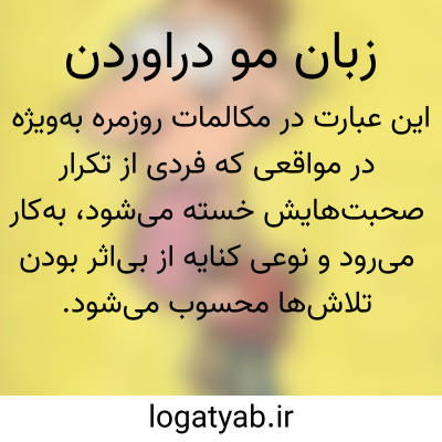 اصطلاح «زبان مو درآوردن» در زبان فارسی به معنای بسیار صحبت کردن بدون نتیجه گرفتن است. این عبارت زمانی به کار می‌رود که فردی تلاش می‌کند تا نکته‌ای را به دیگری بفهماند یا او را متقاعد کند، اما با وجود توضیحات فراوان، طرف مقابل توجهی نشان نمی‌دهد یا تغییری در رفتار او ایجاد نمی‌شود.
