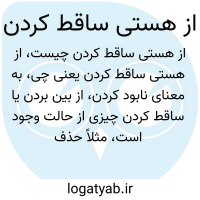 به معنای نابود کردن، از بین بردن یا ساقط کردن چیزی از حالت وجود است، مثلاً حذف یا سقوط یک چیز در حوزههای مختلف مانند فلسفه یا سیاست.