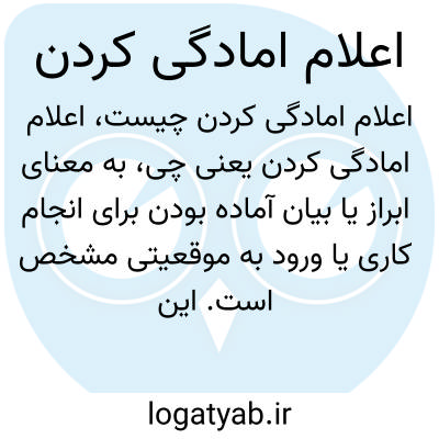 به معنای ابراز یا بیان آماده بودن برای انجام کاری یا ورود به موقعیتی مشخص است. این اعلام معمولاً به صورت رسمی یا شفاهی انجام میشود تا دیگران بدانند که فرد یا گروه آماده هست.