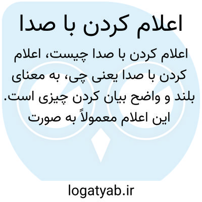 به معنای بلند و واضح بیان کردن چیزی است. این اعلام معمولاً به صورت گفتاری و در محیطی عمومی یا در جمع انجام می‌شود تا پیام به همه منتقل شود.