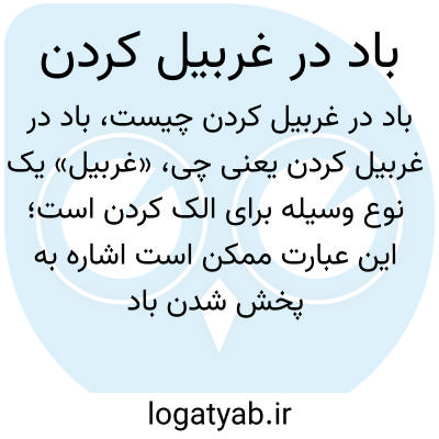 «غربیل» یک نوع وسیله برای الک کردن است؛ این عبارت ممکن است اشاره به پخش شدن باد یا هوا در غربیل یا الک داشته باشد، ولی قطعا یک عبارت اصطلاحی رایج نیست و از لحاظ معنایی ناآشناست.