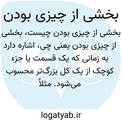 اشاره دارد به زمانی که یک قسمت یا جزء کوچک از یک کل بزرگتر محسوب میشود. مثلاً وقتی میگوییم «این صفحه بخشی از کتاب است»، یعنی آن صفحه تنها قسمتی از یک مجموعه بزرگتر کتاب را تشکیل میدهد.