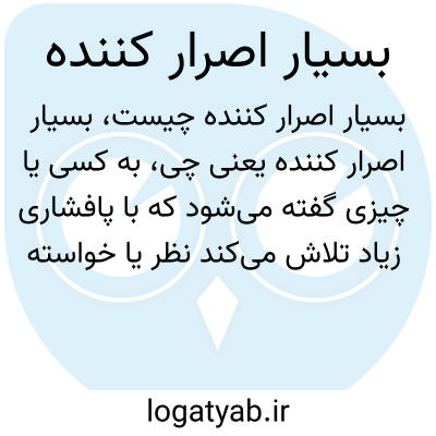 به کسی یا چیزی گفته میشود که با پافشاری زیاد تلاش میکند نظر یا خواسته خود را قبولانده یا به انجام کاری وادار کند. فردی که بسیار اصرار کننده است، معمولاً به طور مکرر و شدتدار تقاضا میکند و به راحتی کوتاه نمیآید.