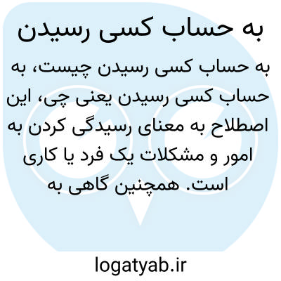 این اصطلاح به معنای رسیدگی کردن به امور و مشکلات یک فرد یا کاری است. همچنین گاهی به معنای فکر کردن و ارزش دادن به کسی به کار میرود. مثلا "به حساب او رسیدن" یعنی به او اهمیت دادن یا مشکلاتش را حل کردن.