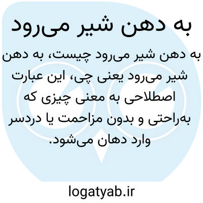 این عبارت اصطلاحی به معنی چیزی که بهراحتی و بدون مزاحمت یا دردسر وارد دهان میشود. معمولاً برای غذا یا نوشیدنی که خوشمزه یا آسان خورده میشود، به کار میرود.