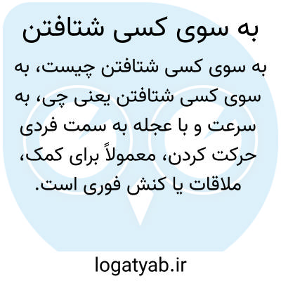 به سرعت و با عجله به سمت فردی حرکت کردن، معمولاً برای کمک، ملاقات یا کنش فوری است.
